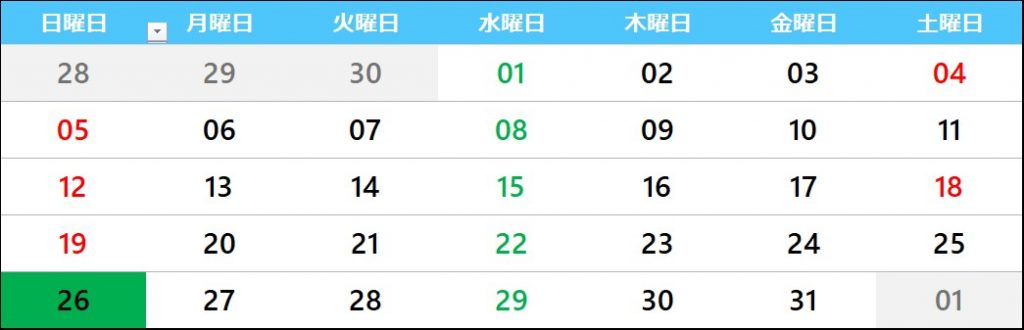 営業日カレンダー(砂利・砂・黒土の店頭販売、配達)